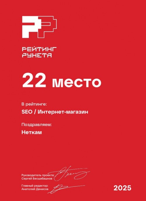 22 место в рейтинге SEO-компаний России, продвигающие интернет-магазины. Премия Рейтинг Рунета — 2025.
