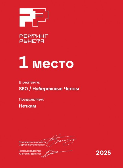 1 место в рейтинге SEO-компаний Набережных Челнов. Премия Рейтинг Рунета — 2025.