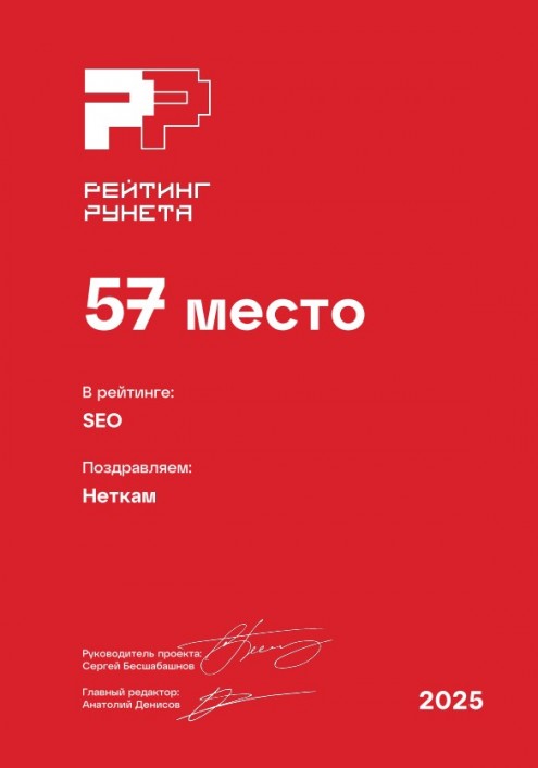 57 место в рейтинге SEO-компаний России. Премия Рейтинг Рунета — 2025.
