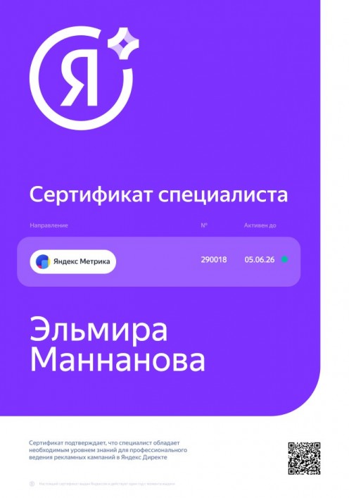 Сертификат специалиста по Яндекс Метрике