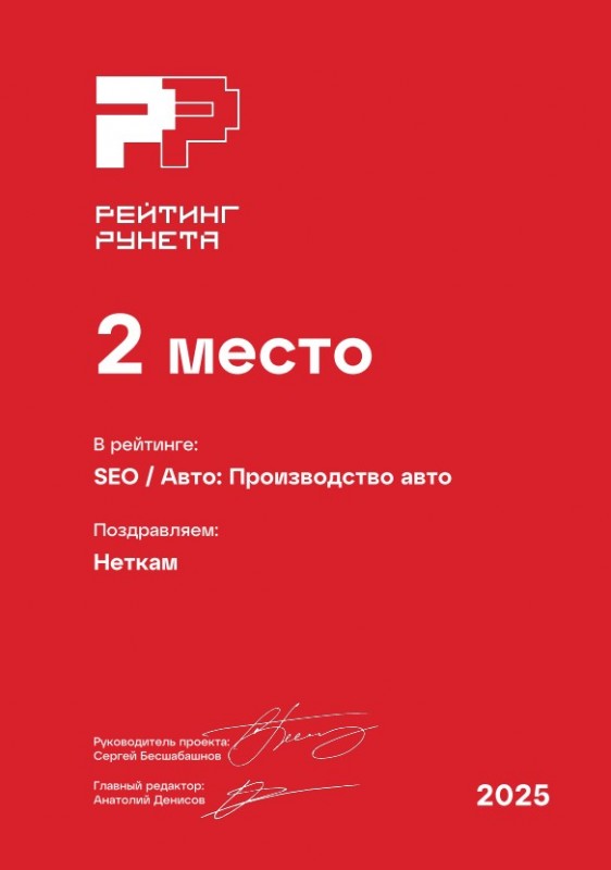 2 место в рейтинге SEO-компаний России, сфера «Производство авто». Премия Рейтинг Рунета — 2025.